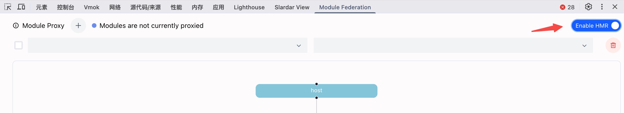 若 shared 提供方是线上的 react ,那么需要使用 Module Federation DevTools,并点击 Enable HMR 按钮